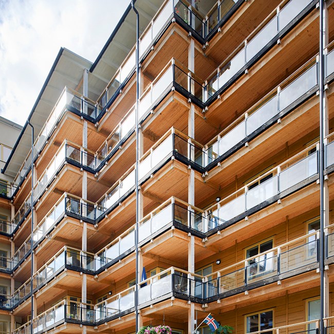 Nominated for the Swedish Wood Award 2016 and Swedens capital Stockholm’s Building of the Year in 2016. In Årsta, south of Stockholm, Skagershuset has garnered a great deal of praise for its architectural qualities, which originate from a smart collaboration between the architect and the supplier of this industrially built wooden apartment block.