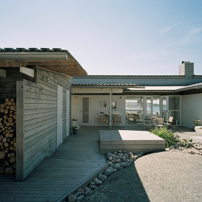 These studios sit at the water’s edge in Skärhamn, close to Gothenburg in Sweden, an idyllic spot in the Bohuslän archipelago. They show great respect for the site and were nominated for the Swedish Wood Award in 2004.