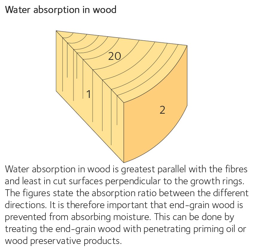 Moisture and water have an effect on the properties of wood during both processing and use. The moisture content affects planing, gluing and surface treatment, for example, along with key properties such as dimensions, strength and resistance to degradation (durability). It is therefore important to know how wood is affected by moisture and how to check its moisture content.