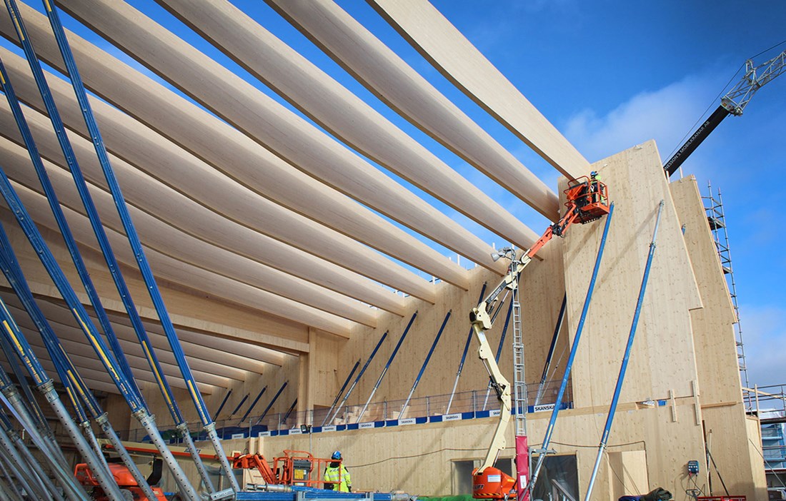 In Sweden, we have a long tradition of building one- and two-storey buildings in wood. In recent decades, there has also been a realisation of the major technical and environmental benefits that wood offers. This has led to ever taller high-rises, sports halls and road bridges being built around a wooden structural frame. Today, modern construction of multi-storey buildings in wood has a market share of 10% and interest continues to grow and grow.