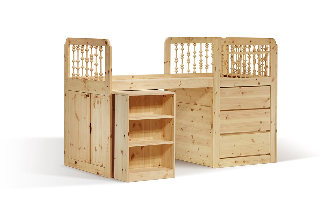 It is a multifunctional set of furniture that adapts to the children’s growth. The bed can be stretched; the drawers can store clothes and accessories; the underneath cabinets can be transformed to a desk and a stool.