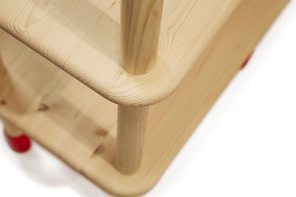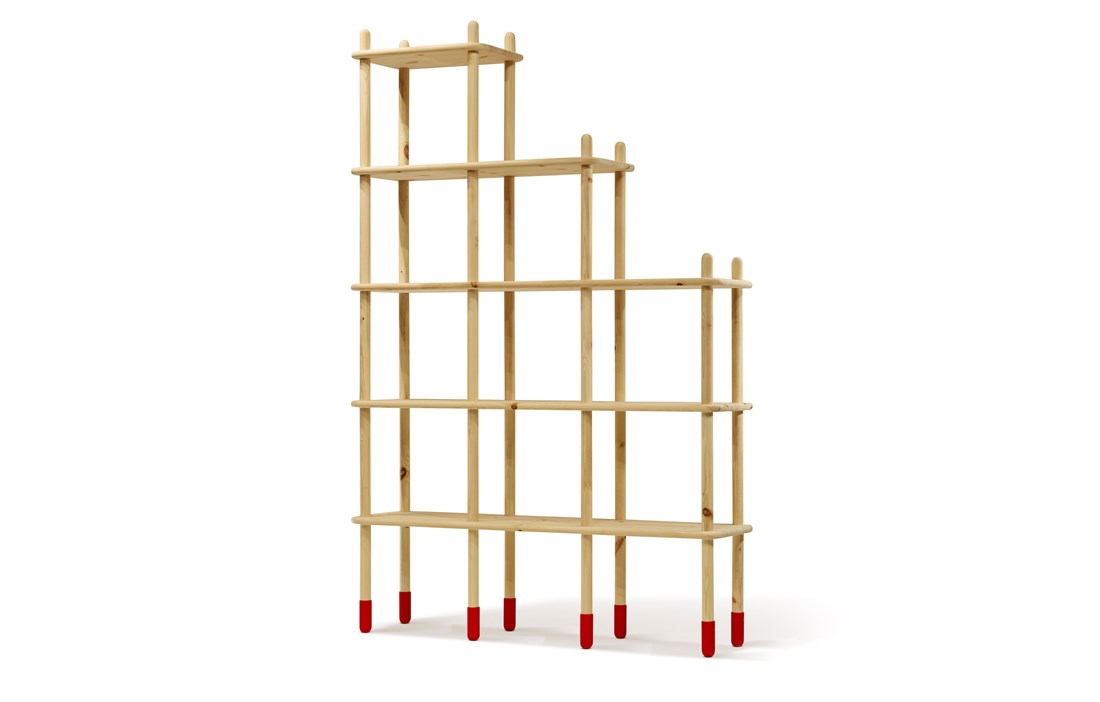 Simply straight lines form symmetric aesthetics and invites the users to play. The shelf is fit for flat packs.