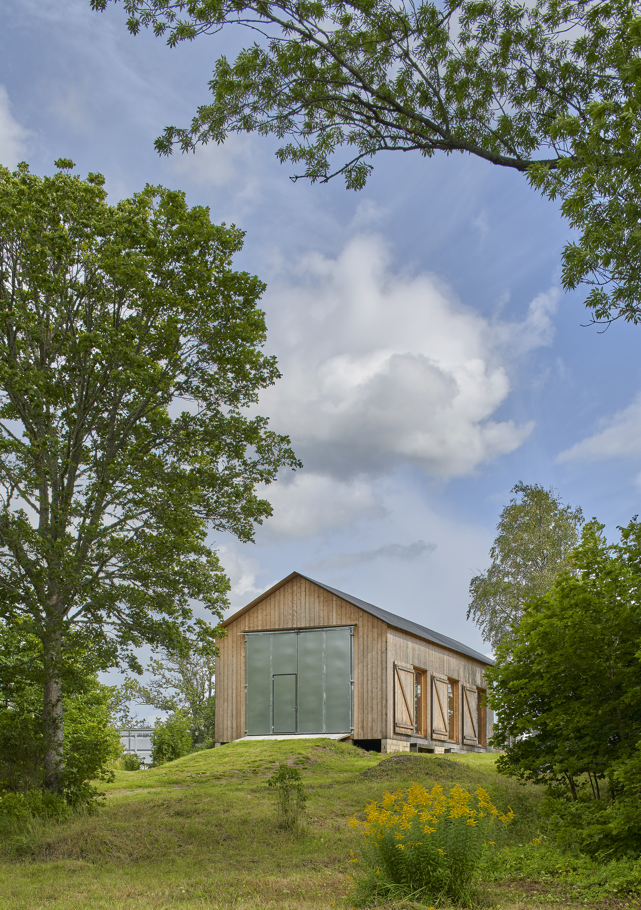 “I like to describe the space as a theatre that can be reconfigured to form different kinds of settings. It was also important to get the right relationship between inside and out. Opening up the oversized doors invites nature into the building,” says architect Anja Thedenius.