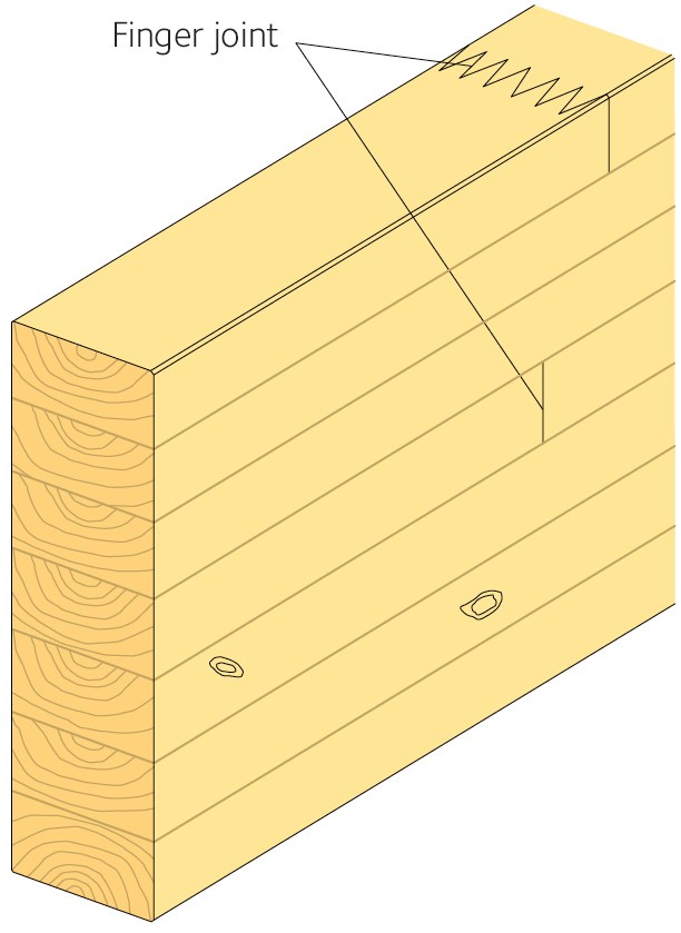 Homogenous glulam has fewer than four layers and is designated with the letter h. Glulam in strength class GL30h comprises laminates in strength class T22 throughout.