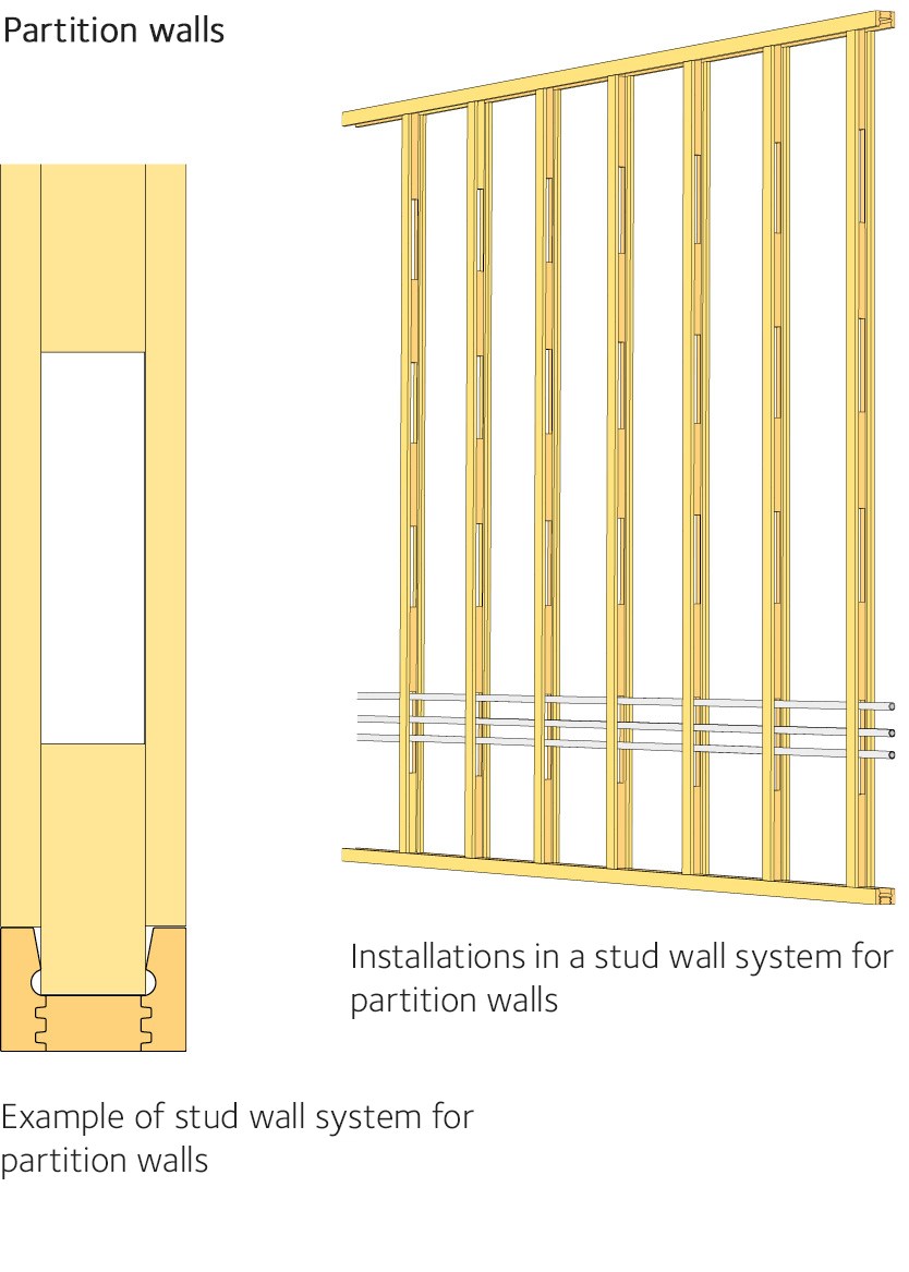 Walls are generally part of a building’s load-bearing carcass, but in many instances their function is only protection and separation. CLT panels can serve as a load bearer while also performing a separating function.