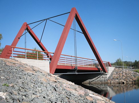 Bridges are traditionally built using concrete or steel structures. Wood is replacing some of these materials primarily due to its low weight to strength ratio, which means that complete components can be assembled rapidly on the construction site. The ability to assemble a wooden bridge with no or just a few hours’ closure of the traversing road or railway is a very strong functional and financial argument – and usually the deciding one. Today’s functional requirements for bridges are the same for all materials, and even the service life is standardised. Bridges in wood often attract attention due to their design and structure, and become a positive feature in the landscape.