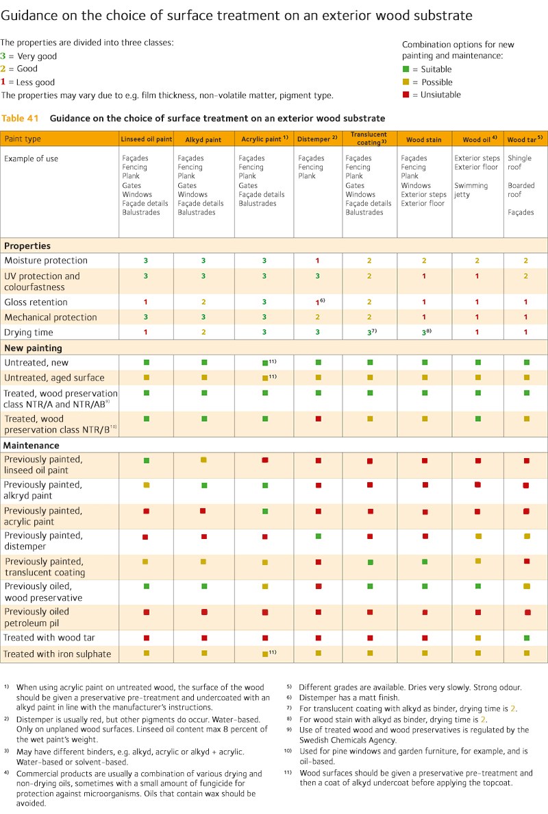 Guidance on the choice of surface treatment on an exterior wood substrate
