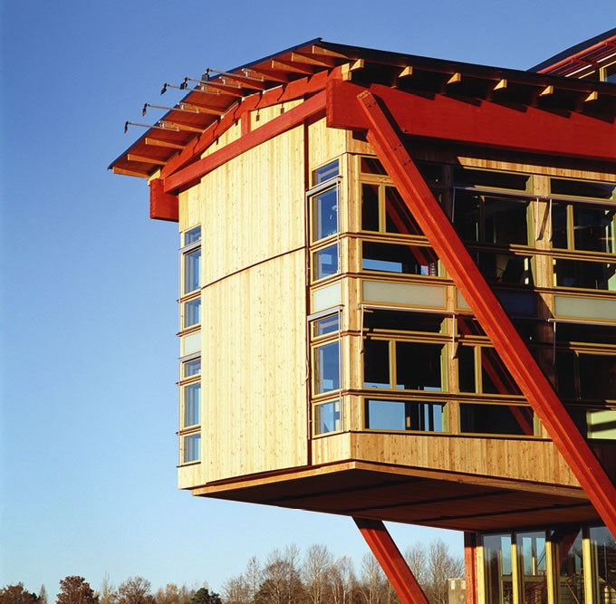 Concrete and wood floor structure, other structural parts in glulam. Office block, Växjö. Photographer: Ole Jais