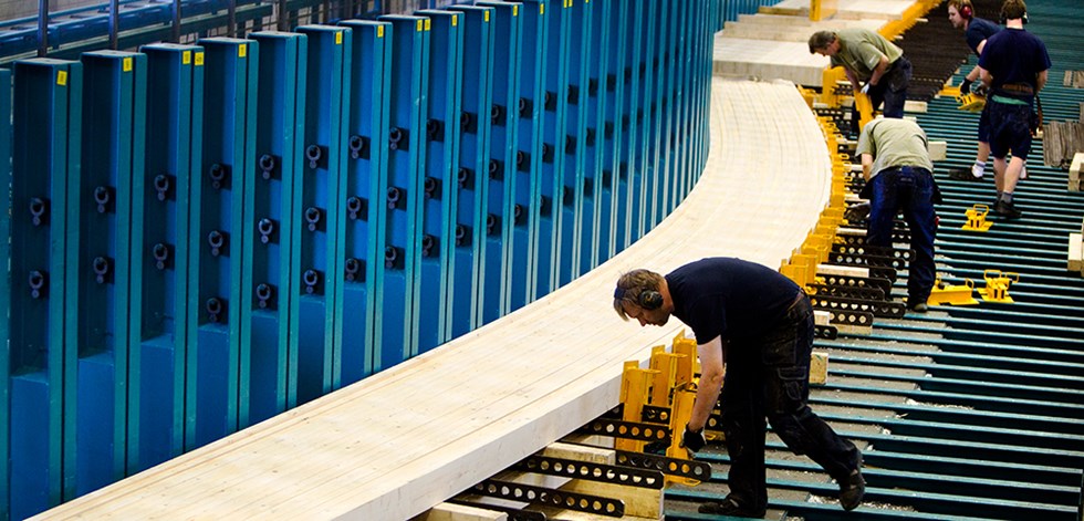 Making wooden arches. Photo: Moelven Töreboda