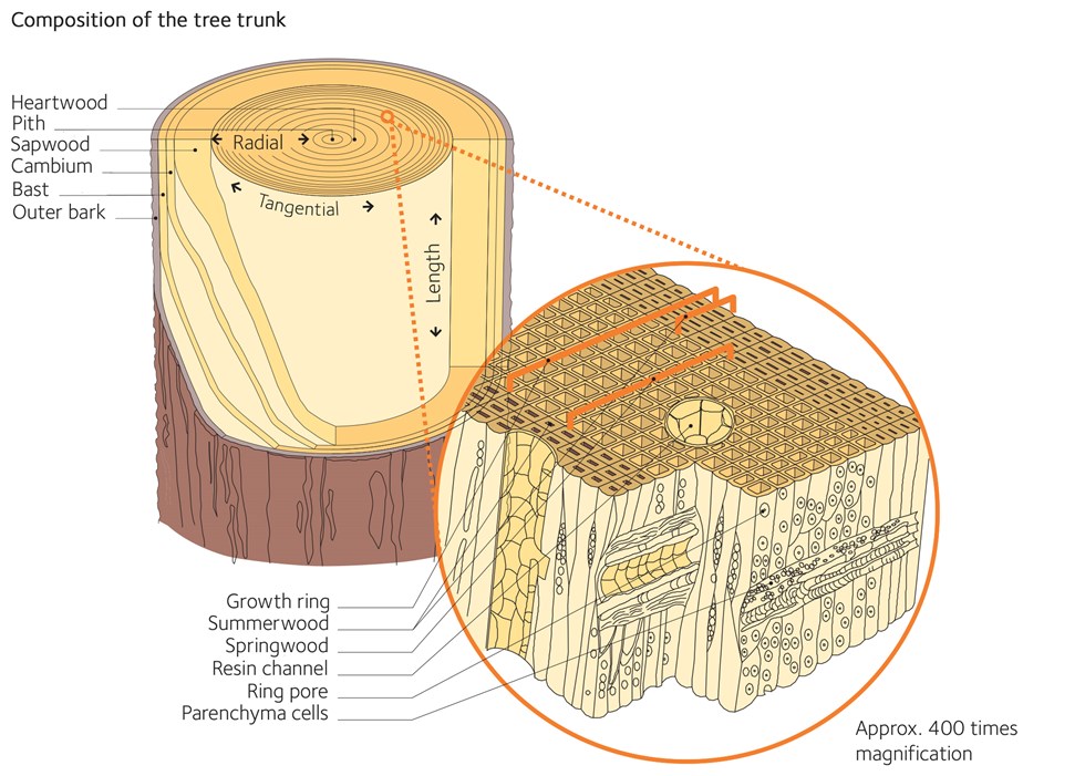 Composition of the tree trunk