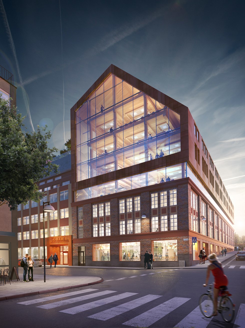 The rise of CLT however offers an approach that builds upon the strengths of concrete in a quite literal sense – engineered wood extensions slapped on top of existing buildings. As wooden structures are light, there are often margins for building additional stories or extensions to roofs to change and modernize the existing building. In such cases, the use of prefabricated wooden components is often suitable. Naturally the design must be verified so that there is a margin for absorbing the additional vertical loads and ensuring horizontal stability.