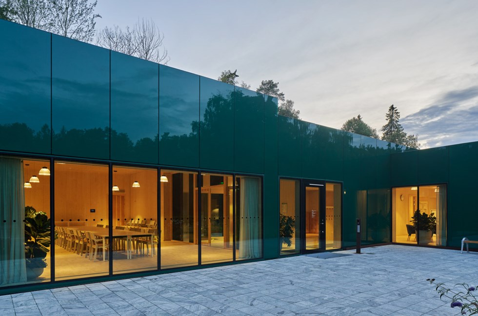 This low-key building slips effortlessly into the context of the site. With its glazed façade, it reflects its surroundings, history and people, making visitors an integral part of the context.