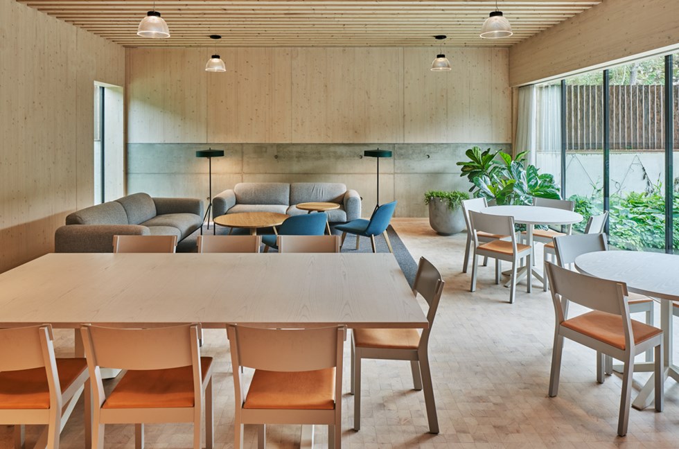 With fine precision and detailing throughout, the wood makes its presence felt on every level, from the spatial to the human.